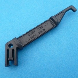 De haak aan de ander kant is geschikt om glaszekeringen los te trekken.