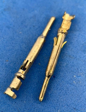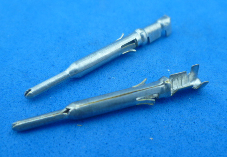 rond male kontakt 1.6 mm voor draad 0.5-1.5 mm2 draad. Lengte 29 mm. Diameter dikkere stuk is ongeveer 2,8 mm. 4 weerhaakjes. Per stuk.