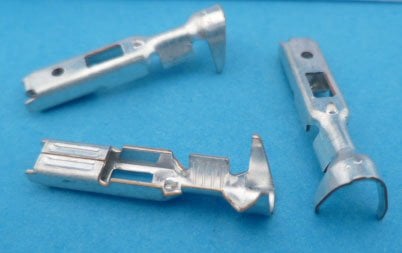 kontakt toepassing onbekend. per stuk. Past op 3-2010. Lengte totaal ongeveer 21,5 mm, afmetingen voorkant 2,75 x 4,05 mm. Ik schat de maximale draaddikte op 1,5 mm2. Het lijkt erop om ze samen met een afsluitsealtje te krimpen zijn.