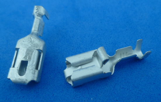 schuifstekker 6.3 mm 'anti slip terminal', gaat alleen los door bij behuizing beet te pakken (of als hij ongeisoleerd is aan het lipje), niet door aan draad te trekken.