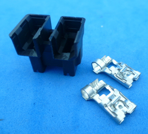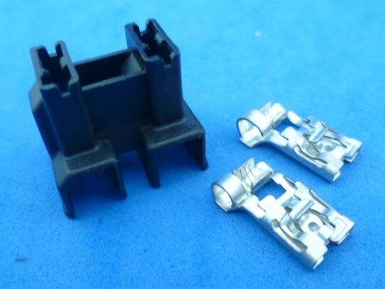 Koplampstekkerhuis 2 polig voor H7 lampen. Kiest u een verpakking van 1 set dan krijgt u 1 stekkerhuis en 2 kontakten 15725-70 erbij.