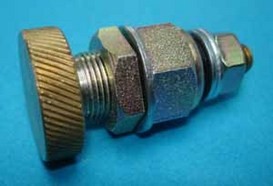 Massaschakelaar. Wordt in een plaat geschroefd die goed in kontakt staat met massa. Door de knop los te draaien wordt de verbinding verbroken. De kop kan er ook helemaal uitgedraait worden en worden meegenomen. 75A continue, 200A gedurende 5 seconden. Aansluitbout 8 mm. lengte 59 mm. Diameter knop 26 mm. inbouwgat 14 mm. inbouwdiepte 29 mm. Knop messing.