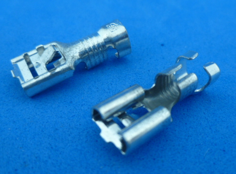 schuifstekkers met weerhaakje 6.3*0.8 mm voor draad 4,0-6.0 mm2 messing vertind.