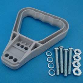 Handvat voor Anderson stekkers. Grijs, met schroeven en moeren. 130 mm lang ongeveer, 115 mm breed.
