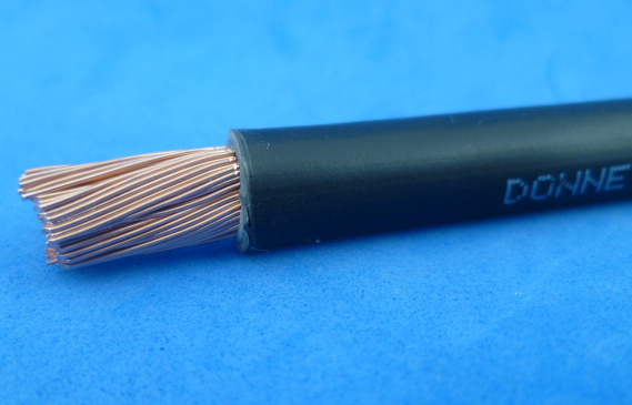 Zwarte 25 mm2 kabel Donne H07V-K Eca. Dit is in principe kabel die de elektro installateur gebruikt om zware installaties zoals verdeelinrichtingen te bedraden. Heeft koperdraadjes van 0,4 mm en een dunnere taaiere isolatie. Het geheel is veel stugger als mijn andere 25FLEXBLK accukabel, die noemen ze ook wel laskabel. Deze kabel heeft een diameter van ongeveer 9 mm. Dus mooi dun.