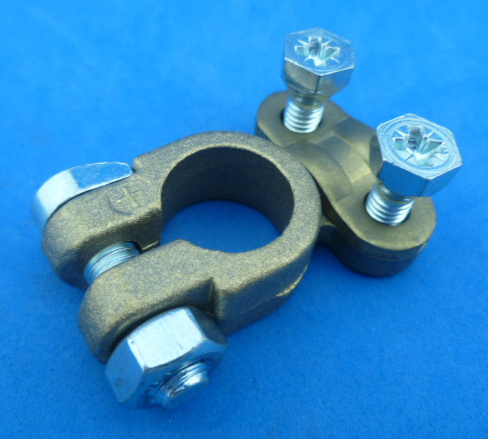 accupoolklem plus aanschroefbare kabel 16-35 mm2. LET OP, 16mm2 kabel krijg je in de meeste gevallen niet vast, zeker met hele flexibele kabel. Gebruik in dat geval een adereindhuls zoals CENI160-15 dan krijg je de kabel wel goed vast. Een adereindhuls met isolatiekraagje zoals TE-16.00 past in ieder geval met mijn kabels niet, de isolatie is te dik. Ook voor 25 mm2 is een adereindhuls bruikbaar, ziet er netjes uit.