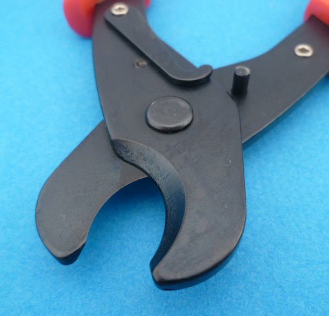 Draadknipper voor maximaal ongeveer 10 mm2. Deze tang snijdt de draad door net als een snoeischaar, wat een veel mooier resultaat geeft als een zijkniptang, vooral als een hele bos draad in een keer wordt afgeknipt.
