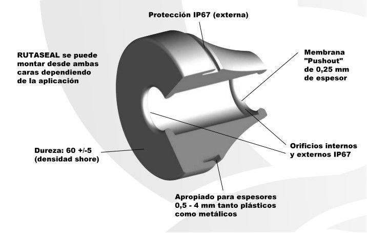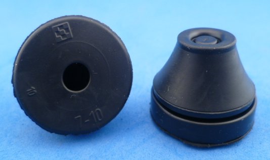 Doorprikbare doorvoerrubber van zacht EPDM. Voor doorvoer van kabels en leidingen 7-10 mm. Paneelgat 19 mm. Dikte van het paneel 1 - 4 mm. Kleur zwart. Klasse van afdichting IP67. Temperatuurbereik -40 tot +110 graden celsius.