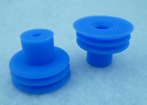 Draadseal met een grootste diameter van ongeveer 20,4 mm. Om lekker klem te zitten moet het gat waar hij in gaat dus iets kleiner zijn. Waar ze precies voor zijn weet ik niet. Een omschrijving op de zak waar ze uit komen zegt: afdichting 2,5 - 6,0 mm2 TYCO MCP blauw. Op de seal staat: VMQ 05501 41. (de kans is groot dat deze nummers niks zeggen). De diameter van het gat in de seal is ongeveer 3,2 mm.