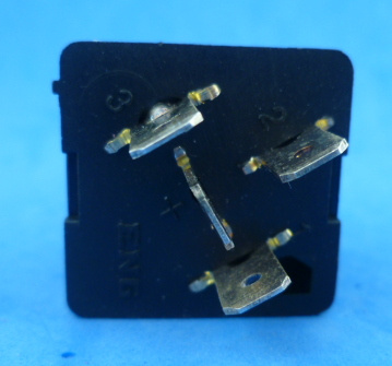 Vier aansluitingen, aan te sluiten met normale 6,3 mm schuifstekkers. De schakelaar heeft de layout van een minirelais dus de relaisvoet RELH007B is ook als aansluitstekker te gebruiken.