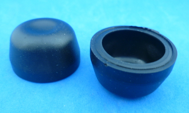 Rubber kap om Drukknop PBS002 waterdicht te maken. Diameter 33 mm. Hoogte 18 mm. Foto 3 laat PBS002 zien met deze kap erop.