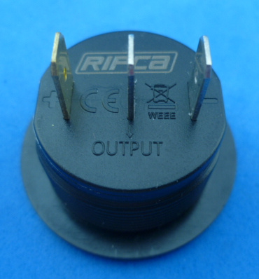 Inbouw spannings en stroommeter met blauwe digitale cijfers. Inbouwmaat is gelijk aan de 'sigaren' accessoires zoals bijvoorbeeld USB-195, USB.QC.3.4 en past in een rond paneelgat van 28,5 mm diameter en ook in de inbouwramen en opbouwbehuizingen voor de genoemde accessoires. Max paneeldikte ongeveer 7 mm.