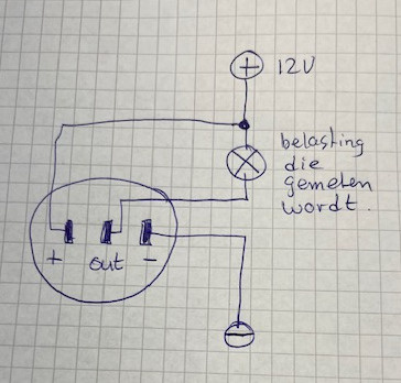 Bij 12 V verbruikt de meter zelf 12mA bij het metertje dat ik heb getest. Hij geeft dan zelf 0,02A aan. Sluit de meter aan zoals op foto 7. Dus de min van de te meten belasting loopt door de meter. De plusdraad naar de meter hoeft dus niet heel dik te zijn.