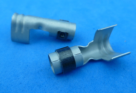 LET OP, dit lijkt een bougie terminal te zijn. Maar op een bougie zoals die van foto 2 en 3 zit hij niet vast. De veer om de schacht heeft een bolletje aan de binnenkant. Daarmee klemt hij zichzelf vast. Bij de bougie op de foto gaat hij wel zwaar over het eerste stukje maar zou dan moeten klemmen op de plek waar de bougie net wat dunner is. Hij zit dan toch iets los. Het dikke stuk van de kop van de bougie is 6,35 mm. Bij het dunnere stuk daaronder is de diameter 5,4 mm.