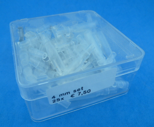 Japanse bullets 3,5 mm. Bestaat uit 16.06002-02, 16.06102-02, RS1501 en RS1502 en dan van elk 25 stuks in een doosje.