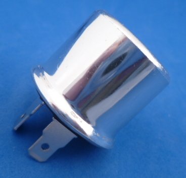 Electronische knipperautomaat 12V, max 138W. Dit is een 'klassieke' knipperautomaat waarop minstens 2 x 21W aangesloten moet zijn voor een normale knipperfrequentie. Gaat 1 van die 21W lampen kapot dan gaat de automaat sneller knipperen. De knipperfrequentie is bij 2 x 21W belasting ongeveer 82 keer per minuut. Aansluitingen: X is de plus ingang 12V, L gaat naar de knipperlichtschakelaar. Ik heb het niet getest maar verkeerd om aansluiten gaat niet goed verwacht ik. Automaat maakt geen geluid. De aansluitingen zijn met 6,3 mm schuifstekkers met de gebruikelijke afstand van elkaar dus een relaisvoet daar past hij ook in. Diameter 35 mm, hoogte met aansluitstekkers is 45 mm.