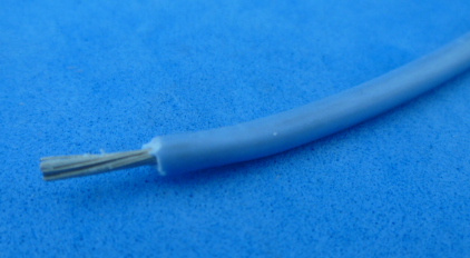 Lapp ölflex Heat 180 SIF A draad 0,75 mm2 blauw 5 meter. De documentatie vermeld 180°C, dat is ook wat Heat 180 doet vermoeden maar bij de opdruk op de draad staat wel 150°C. Dus daar houd ik het maar op. Siliconen isolatie is zeer soepel, kan heel korte bochtjes maken. De kern is van vertinde koperdraadjes, ongeveer 0,23 mm diameter. Ooit zie je draad met nog dunnere koperdraadjes in de kern die nog soepeler is maar deze is redelijk.