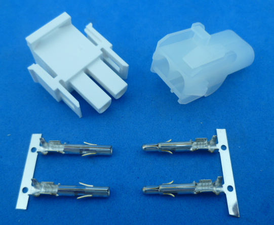 mate-N-lock 2 polige connectorset, huis 26040, 26030 en kontakten 3-1200 en 3-1210. Voor draad t/m 2,5 mm2.