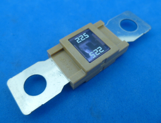 mega zekering 225A . Beige (lichtbruin). Hartafstand boutgaten 52mm. Boutgaten 8mm. Met venster.