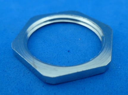 Messing vernikkelde wartelmoer PG16. Dikte 3,05 mm. Sleutelmaat 26,5 mm. Grootste diameter 28,95 mm. Technisch unie bestelnr. 9361804.