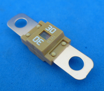 midi zekering 30A, oranje-lichtbruin, gatafstand 30 mm, gaten 5 mm. De foto kan afwijken want elke levering is waarschijnlijk weer anders maar ze zijn wel met transparant venster.