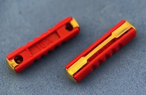 Let op. Er is altijd vraag naar zekeringen met koper of messingkleurige smeltstrook. Waarschijnlijk omdat die het beter doen want dit type zekering hoort niet bij de super betrouwbare type's. Ik heb het plastic van de zekeringen getest met een heteluchtfohn, een RF16TP met zilverkleurige smeltstrook gelijktijdig met deze zekering met messingkleurige smeltstrook. Het plastic van de messingkleurige zekering gaat eerder smelten dan de andere. Dus misschien is in dit geval de messingkleurige niet de beste keuze. Hoe het werkt in de praktijk in een zekeringkast dat is niet eenvoudig vast te stellen welke de beste zijn.