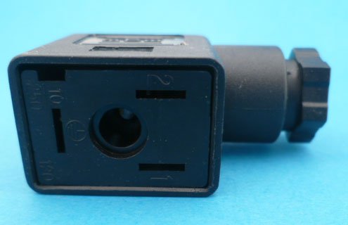 Aansluitstekker voor solenoids 3 polig. Draden zijn aanschroefbaar. Kabelwartel voor kabel ongeveer max 6,5 mm. Afmetingen 21 x 29 mm. 30 mm hoog. Geleverd met pakking en schroef.