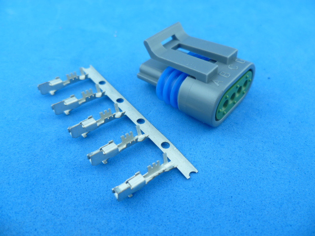 5 kontakten zitten erbij, type Delphi 12124075. (nummer in mijn webshop DEL-1212-4075).