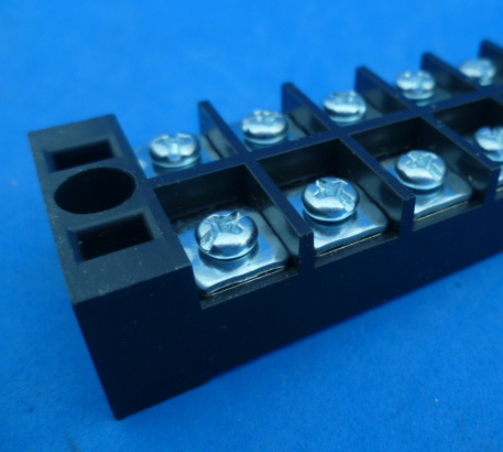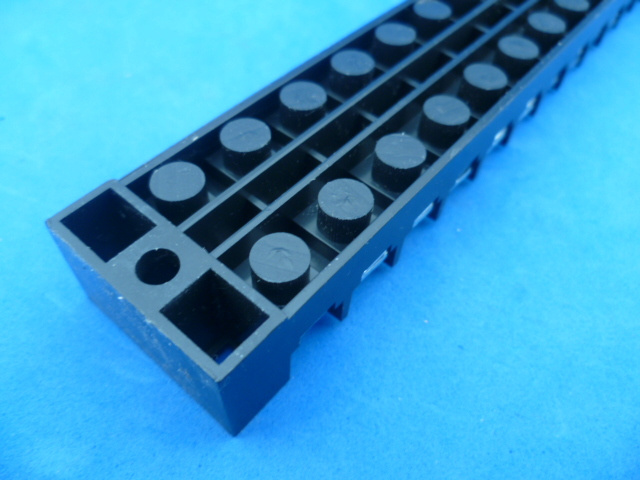 12 polig aansluitblok met schroeven. Elke schroef is doorverbonden met de schroef er tegenover.