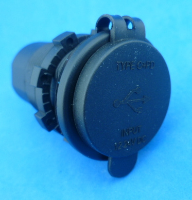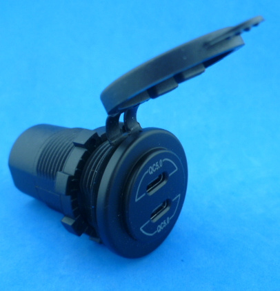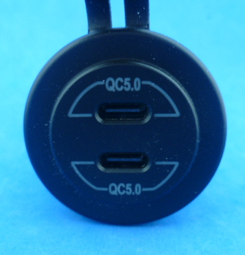 Dubbele USB-C laadaansluiting. Helaas heb ik geen technische gegevens. QC 5.0 staat zover ik weet voor een snellader, die bij een geschikt aangesloten apparaat de spanning verhoogd tot maximaal 20V. Op een 12V boordnet zal dat niet gebeuren denk ik. Waarschijnlijk is deze aansluiting geschikt voor 12 en 24V. Met welke spanning deze laadaansluiting op 12V boordnet gaat laden weet ik niet. Als ik meer info krijg komt het erbij staan ...